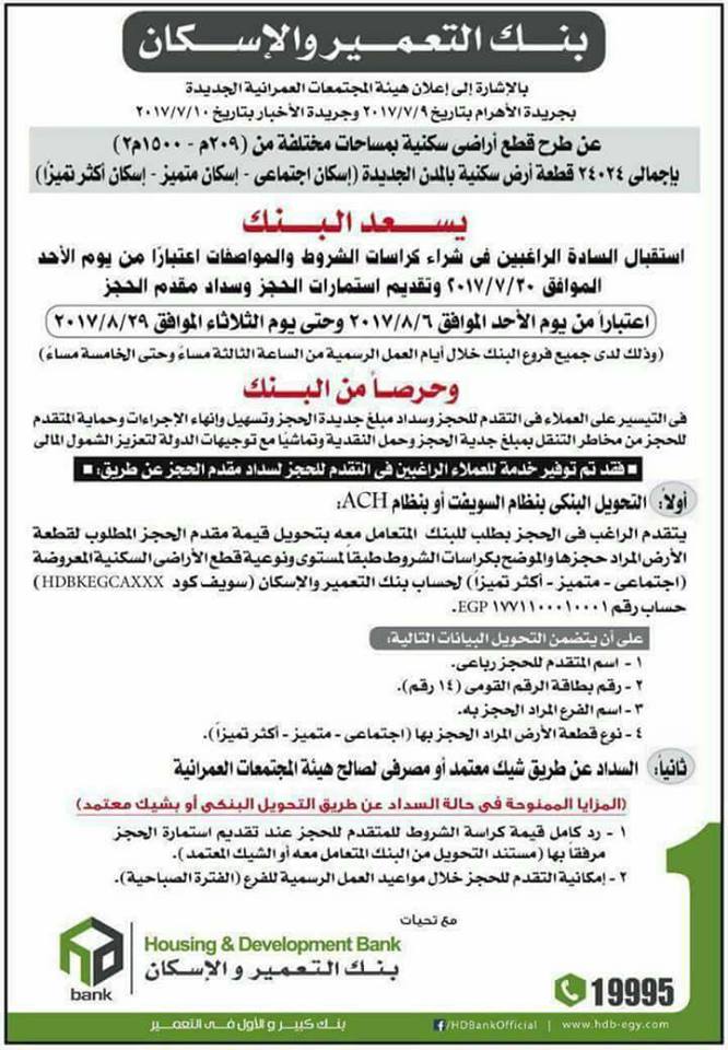 و غير دول فى شهادات الاستثمار. قرعة اراضي بنك التعميروالاسكان القاهرة. الأحد 30 يوليه 2017 01 51. وزارة الإسكان المجتمعات العمرانية قرعة أراضي الإسكان بنك الإسكان والتعمير.
