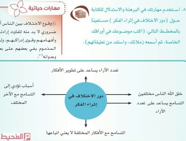 استخدم مهارتك في البرهنة والاستدلال للكتابة حول دور الاختلاف في إثراء الفكر مستعينا بالمخطط الآتي س ئل منذ 25 ثوان في تصنيف حل مناهج التعليم بواسطة alqara 23 4ألف نقاط. استخدم مهاراتك في البرهنة والاستدلال حول دور الاختلاف يعد الاختلاف من الأمور التي أنشئت الأرض بها فخلق الله آدم وحواء مختلفين فجعل منهم الذكر والأنثى فالاختلاف بينهم أدى إلى التعدد والاختلاف في الشعوب والقبائل. استخدم مهاراتك في البرهنة والاستدلال للكتابة حول دور الاختلاف في إثراء الفكر سؤال ذكر معكم طلابنا وطالباتنا المتابعين لموقعنا الأحبة والمميزين من ضمن أسئلة المناهج الدراسية واليوم في هذا المقال سوف نستجيب. استخدم مهاراتك في البرهنة والاستدلال للكتابة حول دور الاختلاف ان الانسان المسلم مثل غيره ممن يعيشون بين العديد من الاختلافات والتطورات في العصر الحالي وكان الله تعالى قد اكد علينا ان الاختلاف هو واحد من الامور.