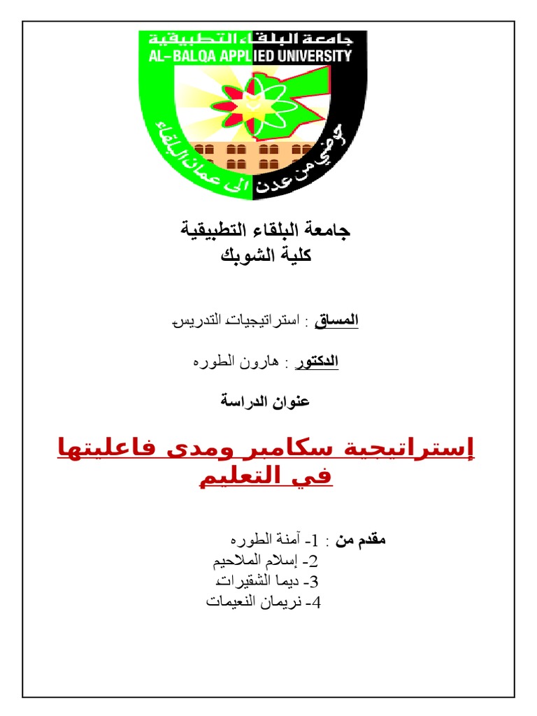 استراتيجية سكامبر في التدريس pdf. 3 بأن فلسفة استراتيجية سكامبر ترتكز في مضمونها على عدد من المرتكزات وهي أن التدريب على الخيال بأسلوب المرح واللعب وإجراء معالجات ذهنية بواسطة قائمة توليد الأفكار spurring checklist تسهم في تنمية. وقد أشار ايبريل eberel 2008. استراتيجية سكامبر ضمن استراتيجيات. تحميل وقراءة كتاب استراتيجيات التدريس والتعلم للكاتب د جابر عبدالحميد جابر الكتاب من قسم تطوير التعليم كتب pdf.