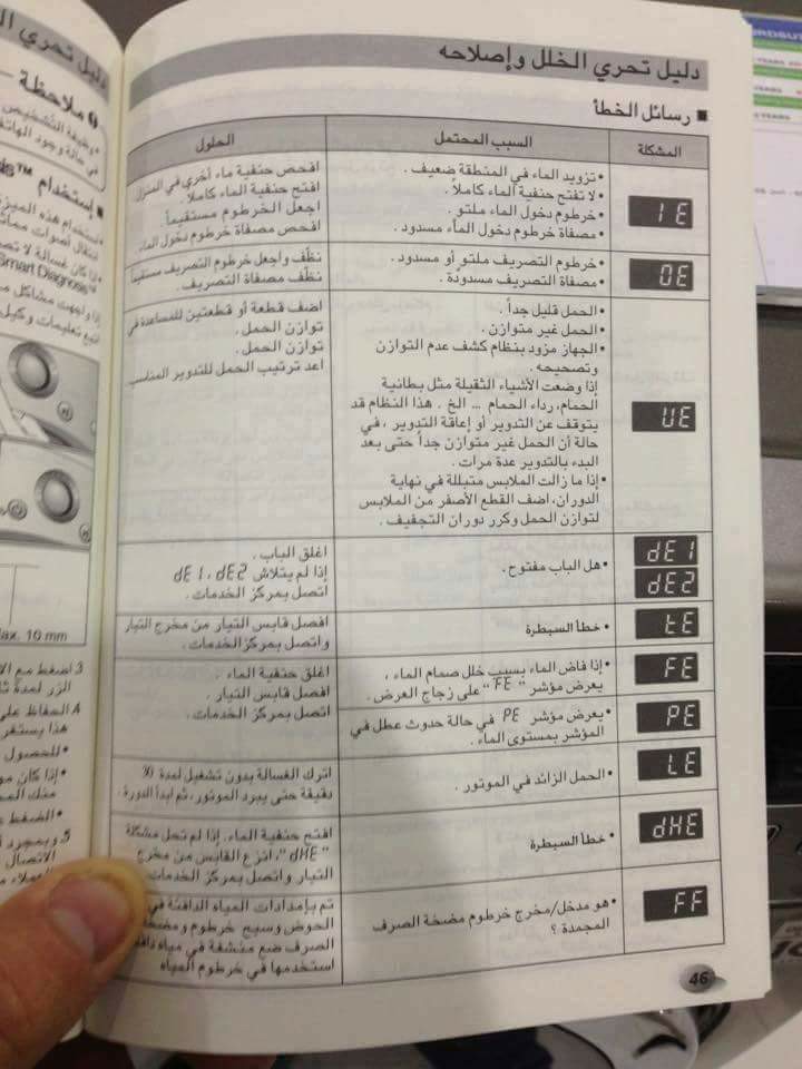 رموز اعطال الغسالة الاتوماتيك والفوق اتوماتيك