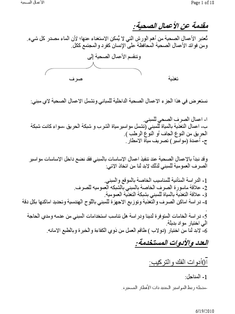 اعمال السباكة والصرف الصحي Pdf